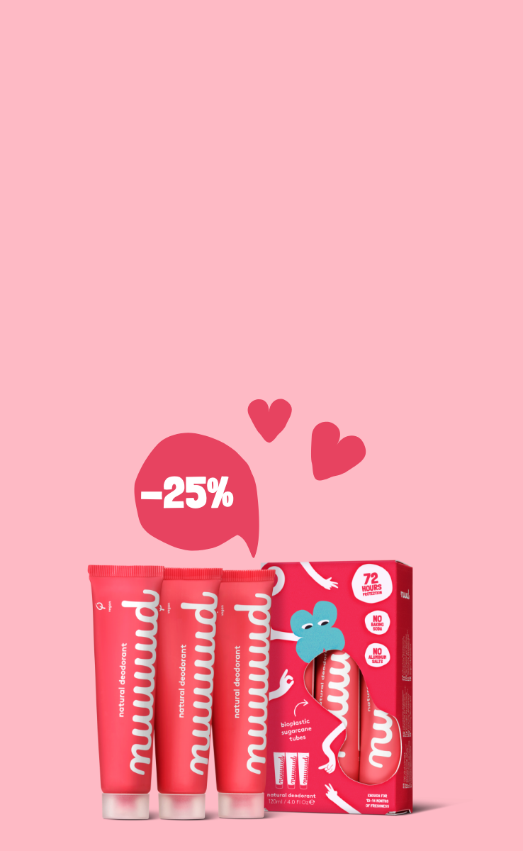 nuud est un déodorant 100 % naturel et végan, efficace pendant plusieurs jours. Notre formule ultra-efficace repose sur notre passion pour des aisselles fraîches et le respect du microbiome naturel du corps.