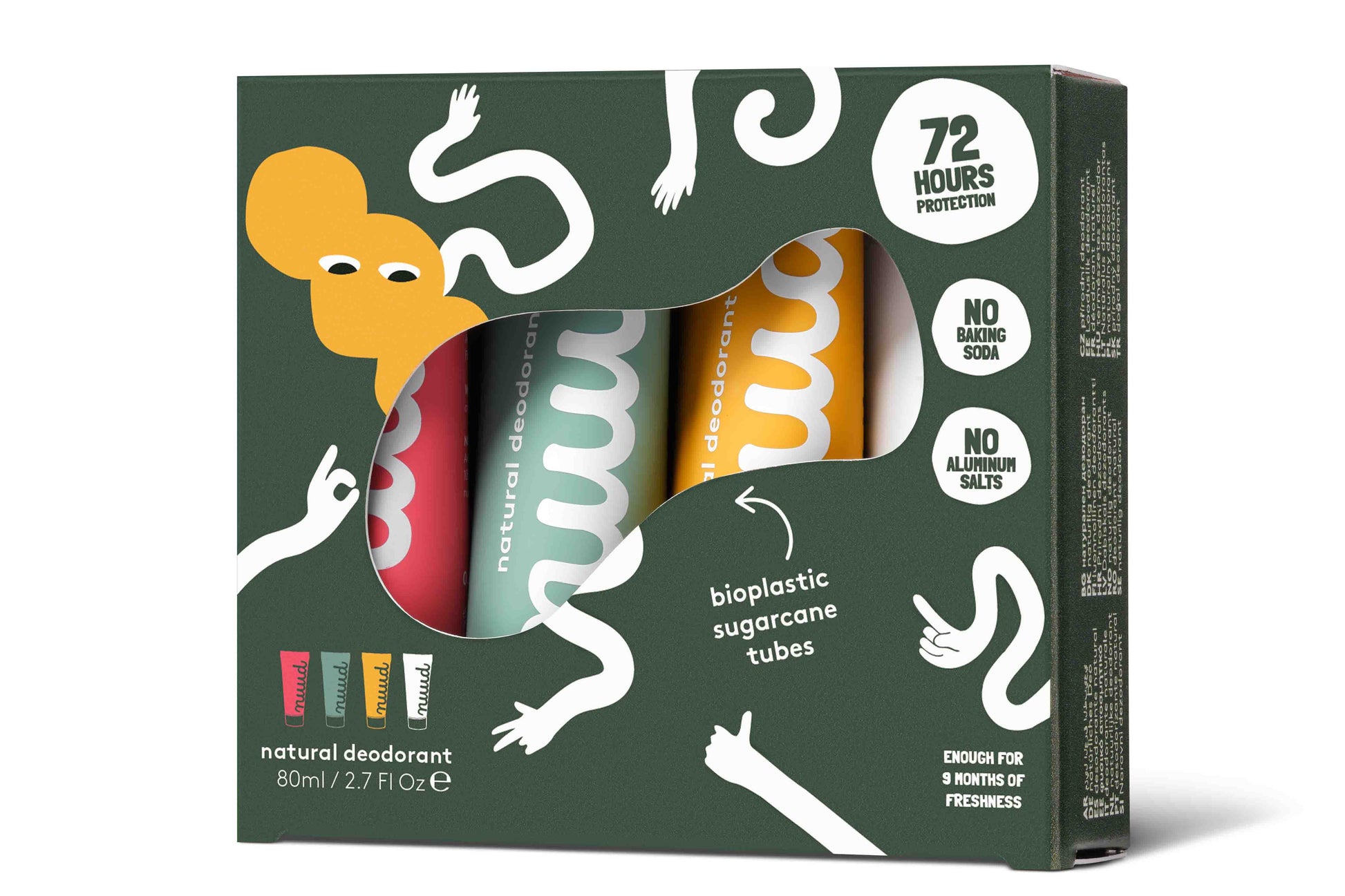 Le Family Pack, c’est le format familial de nuud. Parfait pour toi et tes trois colocs, ou pour partager avec tes ami(e)s, collègues ou coéquipiers - bref, toutes les personnes que tu considères comme ta famille. Quatre tubes, chacun d’une couleur différente, pour que chacun puisse reconnaître son nuud. Mais encore ? C’est 42 % d'économies par rapport au Starter Pack ! Et maintenant qu’on y pense, c’est encore plus smart que le Smarter Pack.